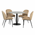 | Material: | Tablero de MDF con acabado de mármol fabricado de papel de madera. Asientos fabricados en tela de terciopelo y patas de acero. |