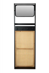 | Material: | espejo de vidrio sobre respaldo de MDF. Percheros de hierro pintados en polvo negro. Mimbre neutro. , Marco pintado en polvo negro |