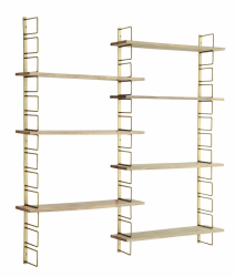 | Material: | Estante de pared en latón y estantes de madera. |