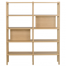 | Material: | Fabricado de roble macizo torneado en los laterales. Estantes y respaldos de tablero de partículas con chapa de roble. |
