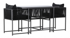 | Material: | Grupo de comedor en acero negro y tapa de mesa de vidrio |