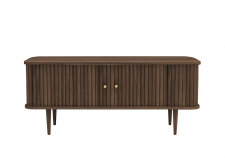 Da un toque elegante a tu hogar con esta mesa auxiliar en un bonito color nogal. Fabricada con MDF sostenible con chapa de nogal natural, la mesa ofrece un aspecto de alta calidad y atemporal. La mesa auxiliar está equipada con prácticas puertas correderas de MDF con chapa de nogal, que se deslizan elegantemente alrededor de la mesa y crean un diseño único. Las robustas patas de roble macizo, complementadas con una pata de soporte discreta en la parte trasera, proporcionan una construcción estable y añaden una sensación natural al mueble.