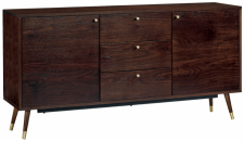 El aparador está fabricado en chapa de nogal rústico con vetas naturales y sutiles detalles en latón cepillado – un equilibrio perfecto entre elegancia clásica y forma moderna.