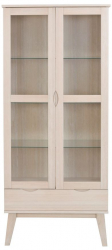 | Material: | Tapa y estructura de chapa de roble lacada y patas de roble macizo lacado. Vidrio templado en puertas y estantes. |